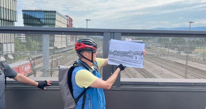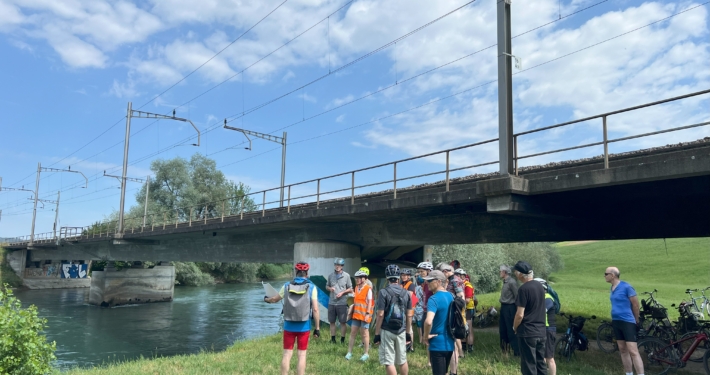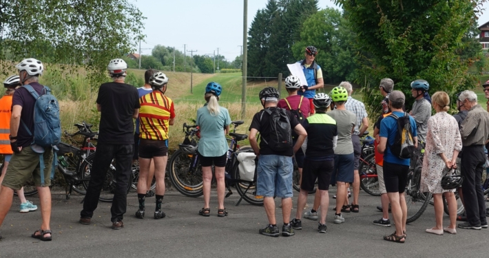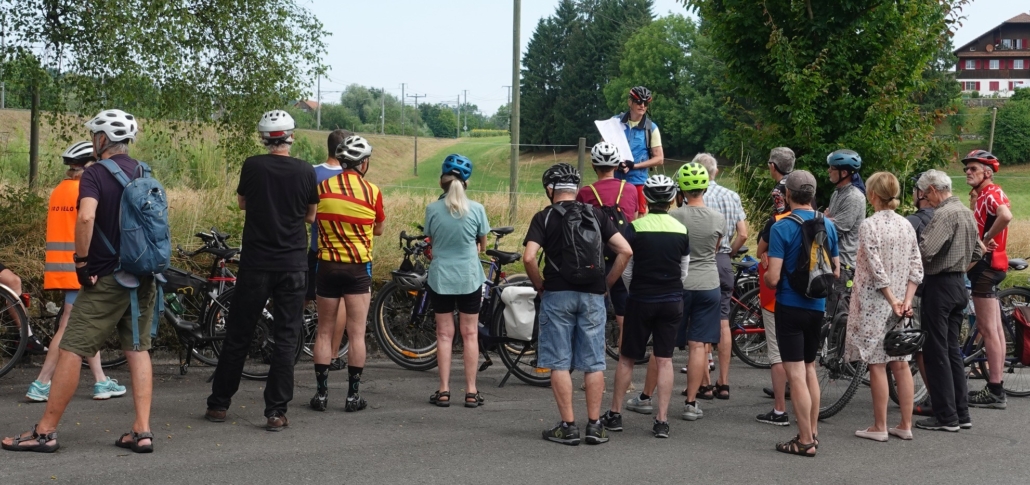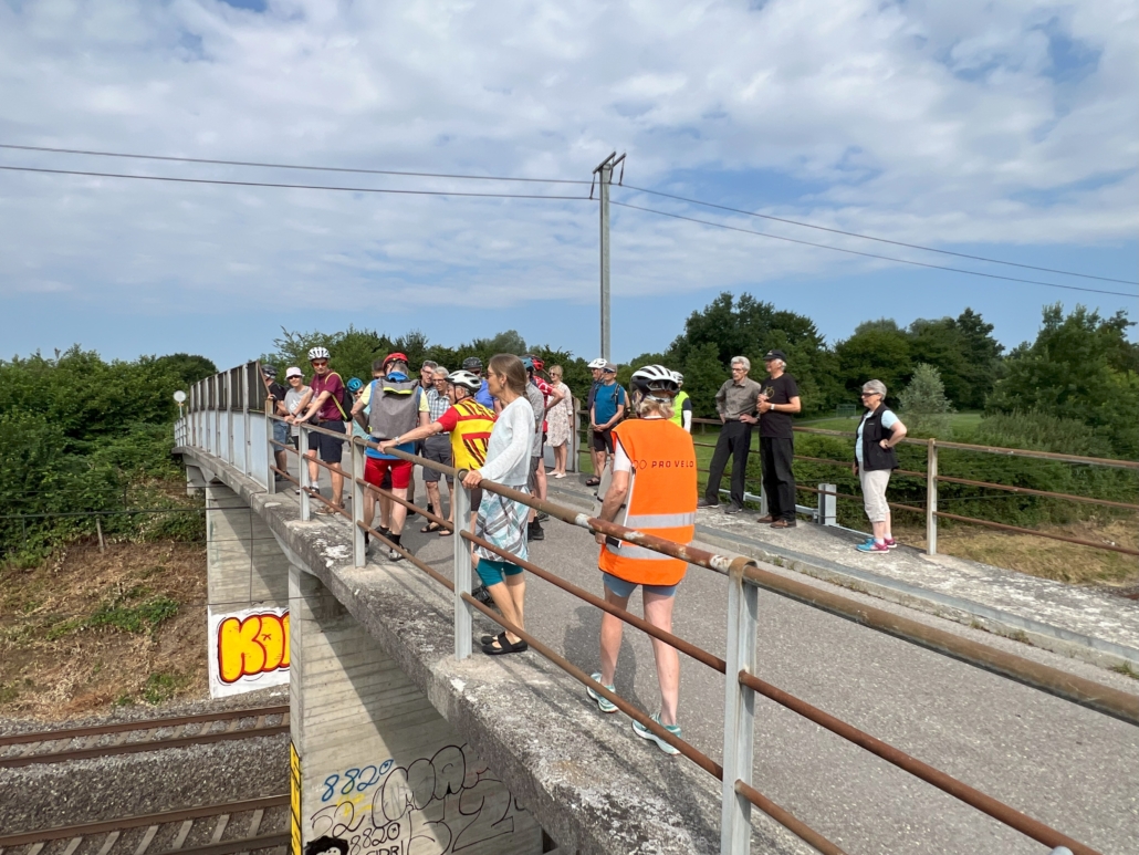 Der erste Samstag im Juli ist jeweils für die Velo-Kultour von Pro Velo Zug reserviert. Bei bestem Wetter trafen sich 25 Velofahrende beim Bahnhof Cham. Martin Stuber, der Kenner der Eisenbahngeschichte des Kantons Zug schlechthin, hatte uns wieder einiges zu erzählen.